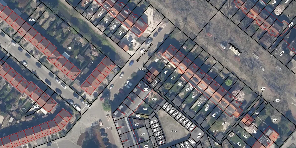 Borchsatelaan 158 is gelegen op kadastraal perceel HLG03E1863. Deze kadastrale aanduiding is uniek en wordt gebruikt door het Kadaster om eigendomsrechten en andere zakelijke rechten vast te leggen. Het perceel maakt onderdeel uit van de kadastrale gemeente Hillegersberg.
