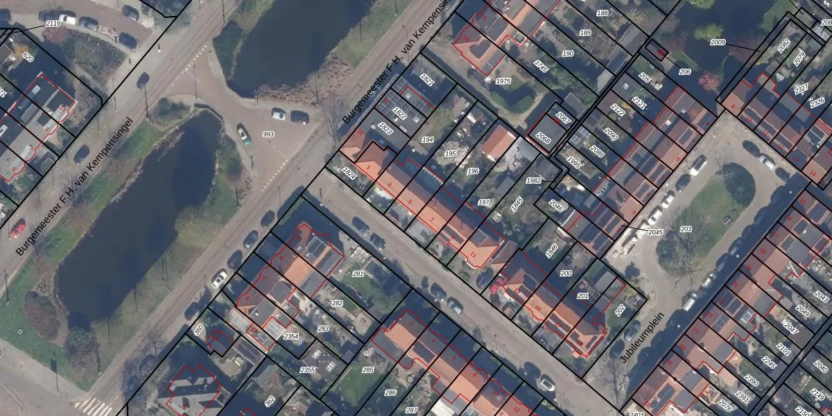 Gebruik de zoekbalk of klik op een perceel voor informatie over de adressen binnen dit perceel.