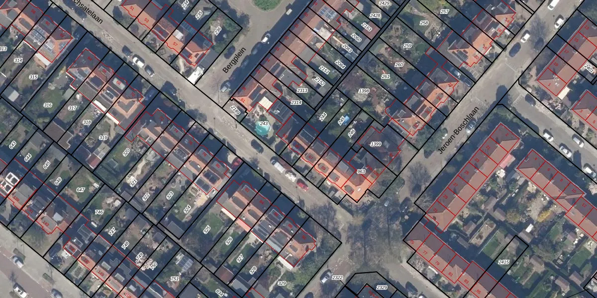Gebruik de zoekbalk of klik op een perceel voor informatie over de adressen binnen dit perceel.