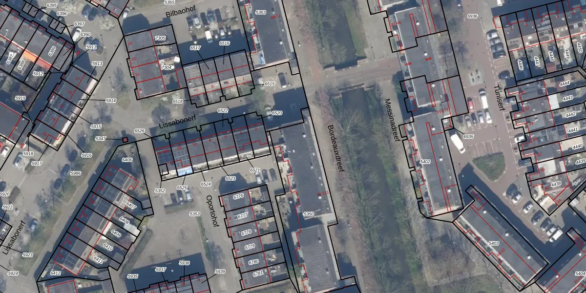 Bordeauxdreef 103 is gelegen op kadastraal perceel HLG03C5350. Deze kadastrale aanduiding is uniek en wordt gebruikt door het Kadaster om eigendomsrechten en andere zakelijke rechten vast te leggen. Het perceel maakt onderdeel uit van de kadastrale gemeente Hillegersberg.