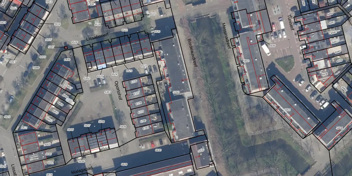 Het perceel waarop Bordeauxdreef 107 staat heeft een oppervlakte van 940 m². Dit is een groot perceel. De perceeloppervlakte wordt geregistreerd door het Kadaster. Gedetailleerde informatie over de maten van dit perceel kunt u vinden in het rapport Kadastrale kaart met maatvoering van Bordeauxdreef 107.