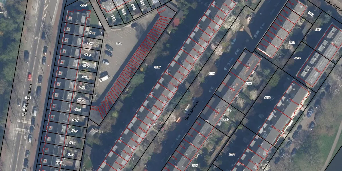 Het perceel waarop Boreelstraat 25-B staat heeft een oppervlakte van 4899 m². Dit is een zeer groot perceel. De perceeloppervlakte wordt geregistreerd door het Kadaster. Gedetailleerde informatie over de maten van dit perceel kunt u vinden in het rapport Kadastrale kaart met maatvoering van Boreelstraat 25-B.