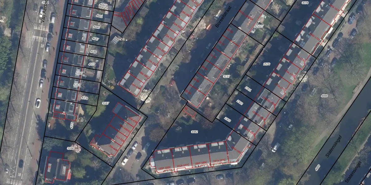 Het perceel waarop Boreelstraat 92 staat heeft een oppervlakte van 1114 m². Dit is een zeer groot perceel. De perceeloppervlakte wordt geregistreerd door het Kadaster. Gedetailleerde informatie over de maten van dit perceel kunt u vinden in het rapport Kadastrale kaart met maatvoering van Boreelstraat 92.