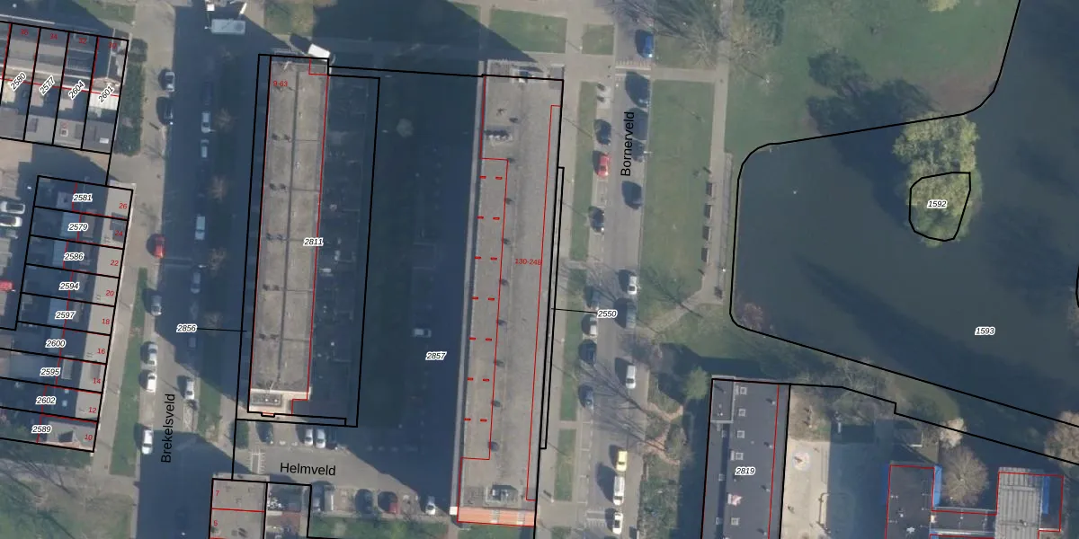 Bornerveld 188 is gelegen op kadastraal perceel CLS00K2857. Deze kadastrale aanduiding is uniek en wordt gebruikt door het Kadaster om eigendomsrechten en andere zakelijke rechten vast te leggen. Het perceel maakt onderdeel uit van de kadastrale gemeente Charlois.