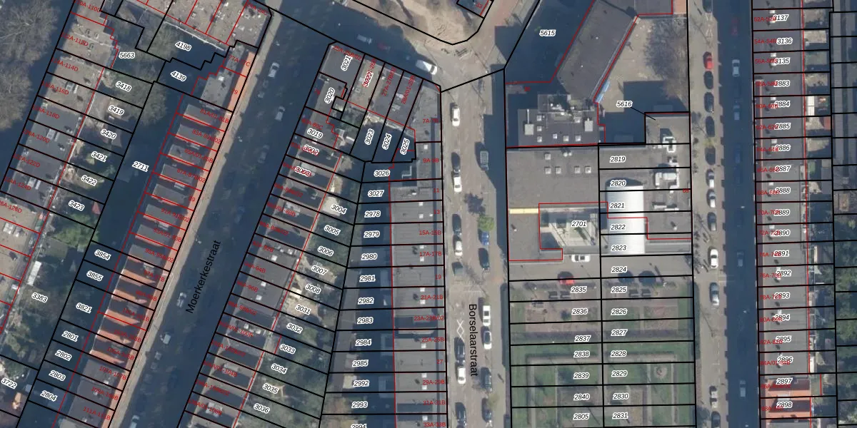 Gebruik de zoekbalk of klik op een perceel voor informatie over de adressen binnen dit perceel.