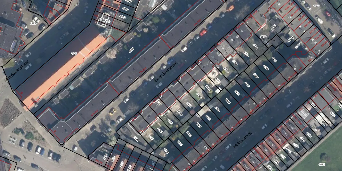 Gebruik de zoekbalk of klik op een perceel voor informatie over de adressen binnen dit perceel.