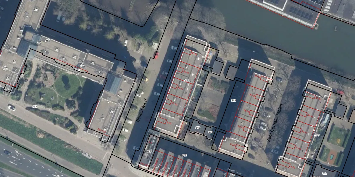 Boslandwerf 37 is gelegen op kadastraal perceel KLG00I526. Deze kadastrale aanduiding is uniek en wordt gebruikt door het Kadaster om eigendomsrechten en andere zakelijke rechten vast te leggen. Het perceel maakt onderdeel uit van de kadastrale gemeente Kralingen.