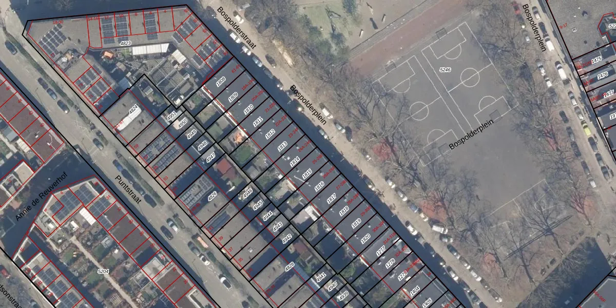 Bospolderplein 24-G is gelegen op kadastraal perceel DHV00H1814. Deze kadastrale aanduiding is uniek en wordt gebruikt door het Kadaster om eigendomsrechten en andere zakelijke rechten vast te leggen. Het perceel maakt onderdeel uit van de kadastrale gemeente Delfshaven.