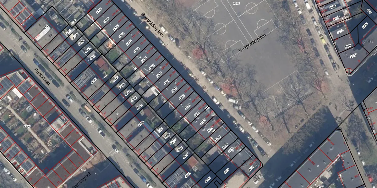Bospolderplein 29 is gelegen op kadastraal perceel DHV00H1819. Deze kadastrale aanduiding is uniek en wordt gebruikt door het Kadaster om eigendomsrechten en andere zakelijke rechten vast te leggen. Het perceel maakt onderdeel uit van de kadastrale gemeente Delfshaven.
