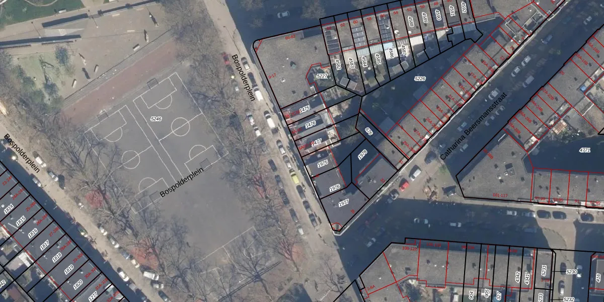 Bospolderplein 5-A-02 is gelegen op kadastraal perceel DHV00H1477. Deze kadastrale aanduiding is uniek en wordt gebruikt door het Kadaster om eigendomsrechten en andere zakelijke rechten vast te leggen. Het perceel maakt onderdeel uit van de kadastrale gemeente Delfshaven.