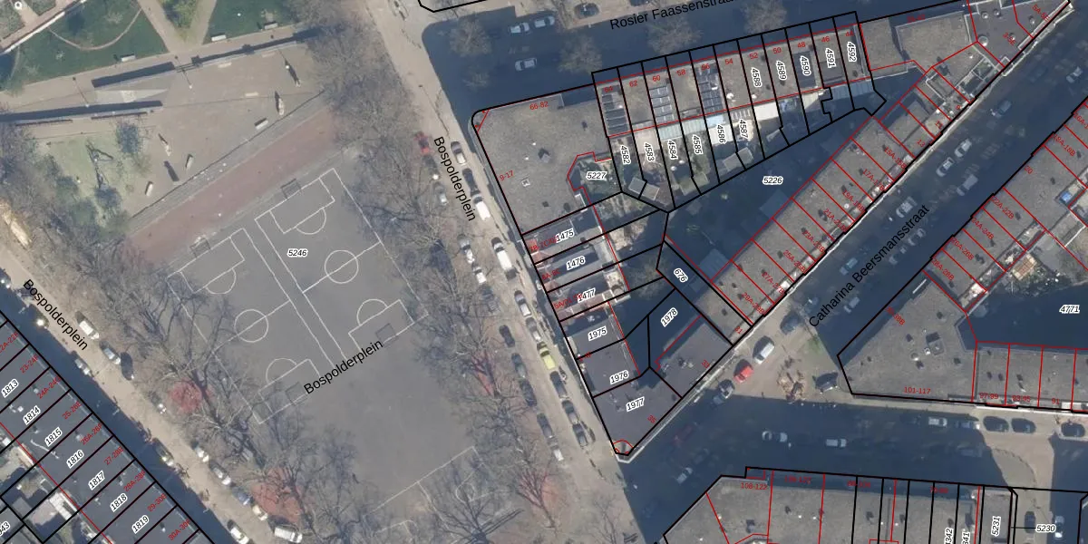Bospolderplein 6-C is gelegen op kadastraal perceel DHV00H1476. Deze kadastrale aanduiding is uniek en wordt gebruikt door het Kadaster om eigendomsrechten en andere zakelijke rechten vast te leggen. Het perceel maakt onderdeel uit van de kadastrale gemeente Delfshaven.