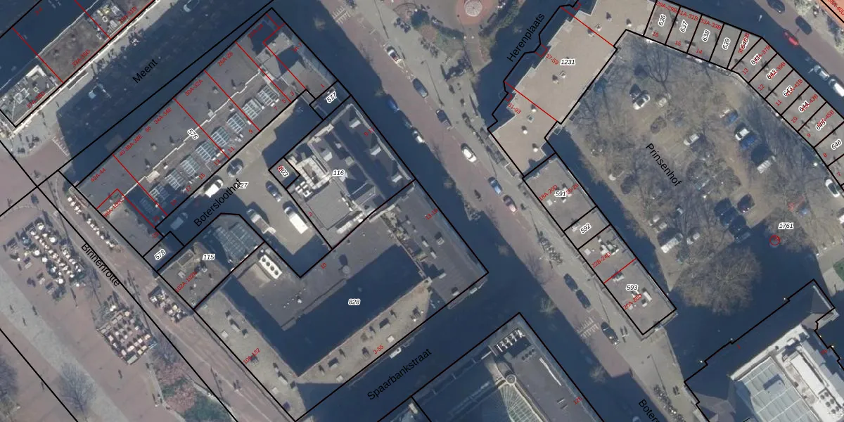 Het perceel waarop Botersloot 15-D staat heeft een oppervlakte van 1846 m². Dit is een zeer groot perceel. De perceeloppervlakte wordt geregistreerd door het Kadaster. Gedetailleerde informatie over de maten van dit perceel kunt u vinden in het rapport Kadastrale kaart met maatvoering van Botersloot 15-D.