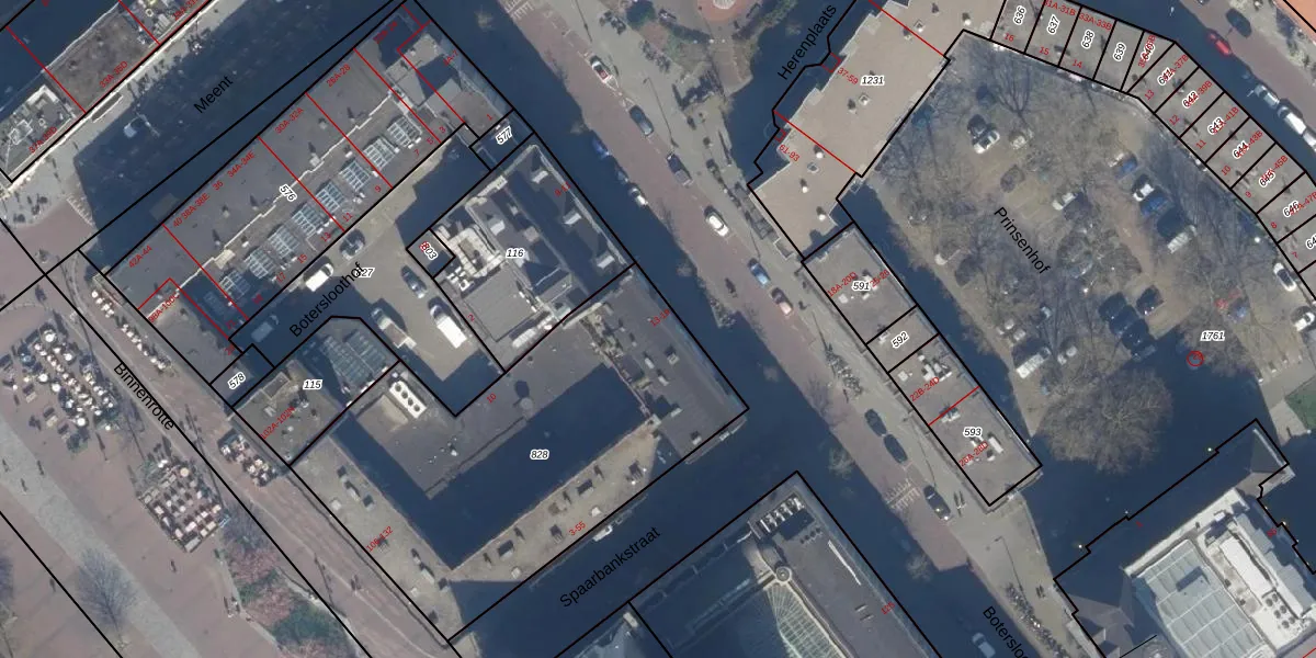 Het perceel waarop Botersloot 17-C staat heeft een oppervlakte van 1846 m². Dit is een zeer groot perceel. De perceeloppervlakte wordt geregistreerd door het Kadaster. Gedetailleerde informatie over de maten van dit perceel kunt u vinden in het rapport Kadastrale kaart met maatvoering van Botersloot 17-C.