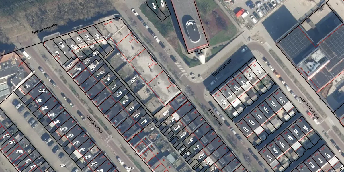 Het perceel waarop Bothastraat 49 staat heeft een oppervlakte van 1194 m². Dit is een zeer groot perceel. De perceeloppervlakte wordt geregistreerd door het Kadaster. Gedetailleerde informatie over de maten van dit perceel kunt u vinden in het rapport Kadastrale kaart met maatvoering van Bothastraat 49.