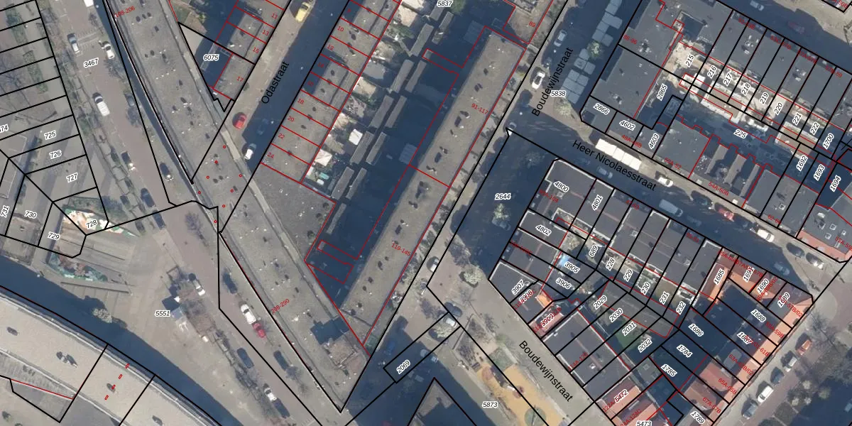 Boudewijnstraat 121 is gelegen op kadastraal perceel CLS00G5837. Deze kadastrale aanduiding is uniek en wordt gebruikt door het Kadaster om eigendomsrechten en andere zakelijke rechten vast te leggen. Het perceel maakt onderdeel uit van de kadastrale gemeente Charlois.