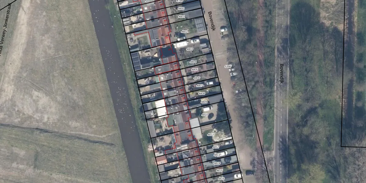 Het perceel waarop Bovendijk 60 staat heeft een oppervlakte van 194 m². Dit is een middelgroot perceel. De perceeloppervlakte wordt geregistreerd door het Kadaster. Gedetailleerde informatie over de maten van dit perceel kunt u vinden in het rapport Kadastrale kaart met maatvoering van Bovendijk 60.