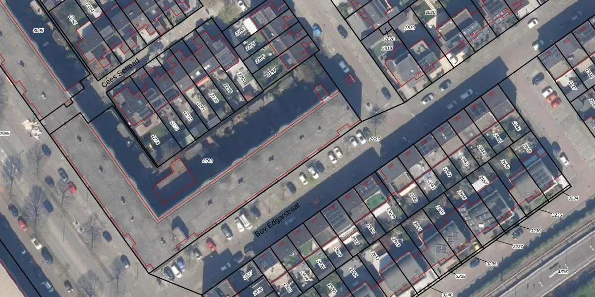 Het perceel waarop Boy Edgarstraat 150 staat heeft een oppervlakte van 3065 m². Dit is een zeer groot perceel. De perceeloppervlakte wordt geregistreerd door het Kadaster. Gedetailleerde informatie over de maten van dit perceel kunt u vinden in het rapport Kadastrale kaart met maatvoering van Boy Edgarstraat 150.