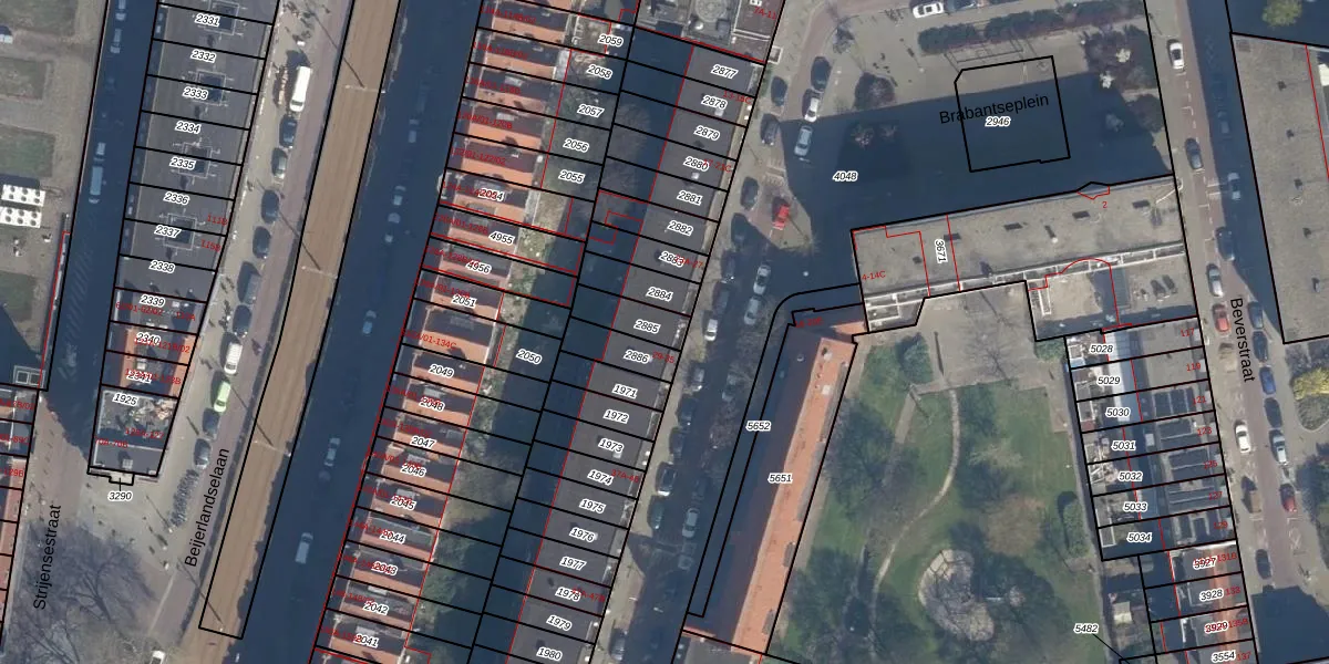 Het perceel waarop Brabantsestraat 29 staat heeft een oppervlakte van 90 m². Dit is een klein perceel. De perceeloppervlakte wordt geregistreerd door het Kadaster. Gedetailleerde informatie over de maten van dit perceel kunt u vinden in het rapport Kadastrale kaart met maatvoering van Brabantsestraat 29.