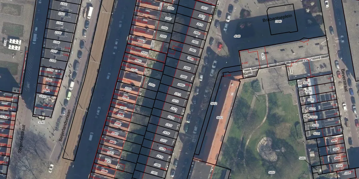 Het perceel waarop Brabantsestraat 33-C staat heeft een oppervlakte van 81 m². Dit is een klein perceel. De perceeloppervlakte wordt geregistreerd door het Kadaster. Gedetailleerde informatie over de maten van dit perceel kunt u vinden in het rapport Kadastrale kaart met maatvoering van Brabantsestraat 33-C.