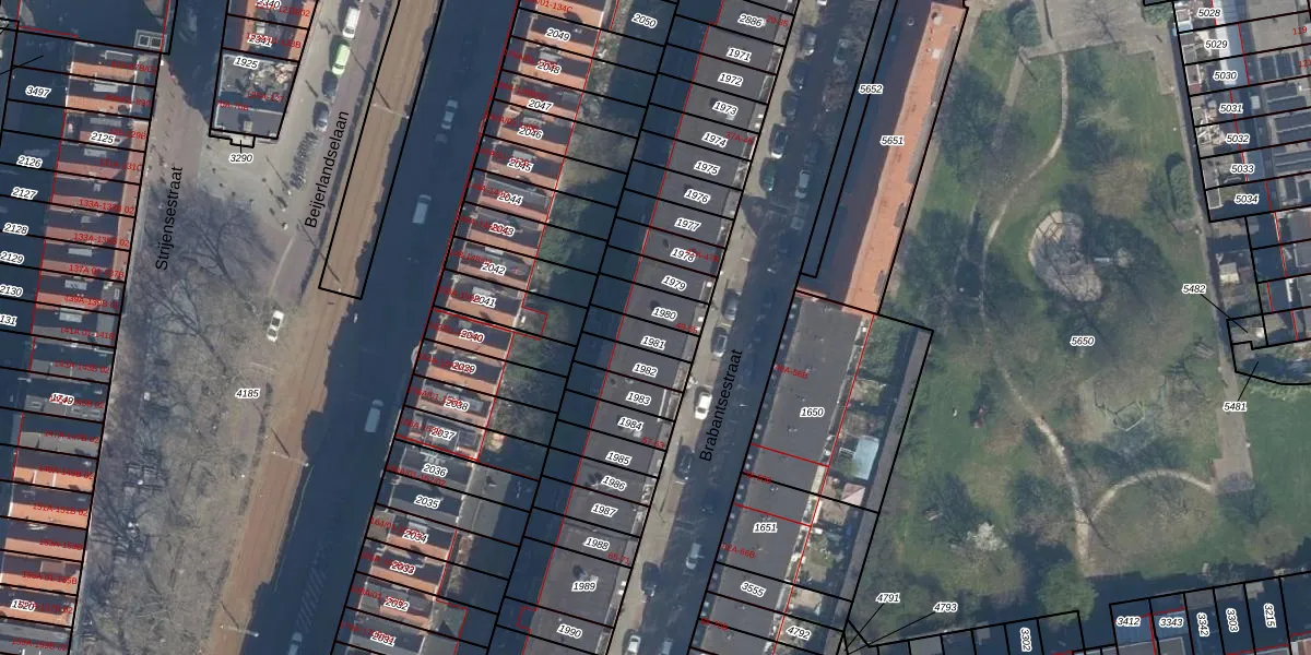 Het perceel waarop Brabantsestraat 51-D staat heeft een oppervlakte van 80 m². Dit is een klein perceel. De perceeloppervlakte wordt geregistreerd door het Kadaster. Gedetailleerde informatie over de maten van dit perceel kunt u vinden in het rapport Kadastrale kaart met maatvoering van Brabantsestraat 51-D.