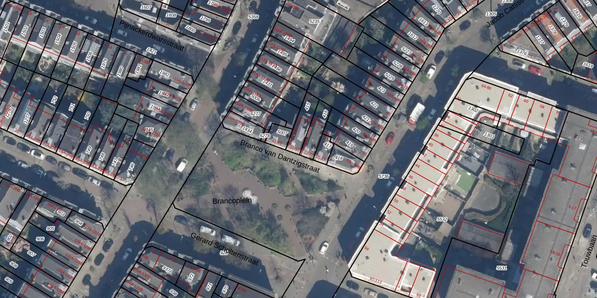 Branco van Dantzigstraat 35 is gelegen op kadastraal perceel RTD07W415. Deze kadastrale aanduiding is uniek en wordt gebruikt door het Kadaster om eigendomsrechten en andere zakelijke rechten vast te leggen. Het perceel maakt onderdeel uit van de kadastrale gemeente Rotterdam.