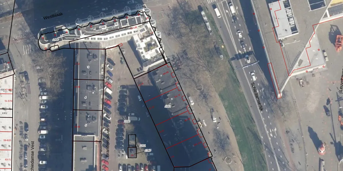 Het perceel waarop het adres ligt is RTD04-AG-1053. De afkorting 'RTD04' staat voor kadastrale gemeente Rotterdam. De oppervlakte van het perceel is 1375 m². Dat is groter dan gemiddeld in Rotterdam, waar de gemiddelde perceeloppervlakte op 1239,97 m² ligt. Het kleinste perceel in de kadastrale gemeente is 0 m² groot. De grootste perceeloppervlakte is 17,3 ha. Op het perceel zijn 48 adressen aanwezig. De laatste wijziging in het de Basisregistratie Kadaster (BRK) was op 01-10-2007.