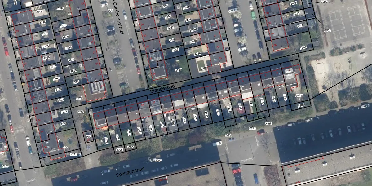 Gebruik de zoekbalk of klik op een perceel voor informatie over de adressen binnen dit perceel.