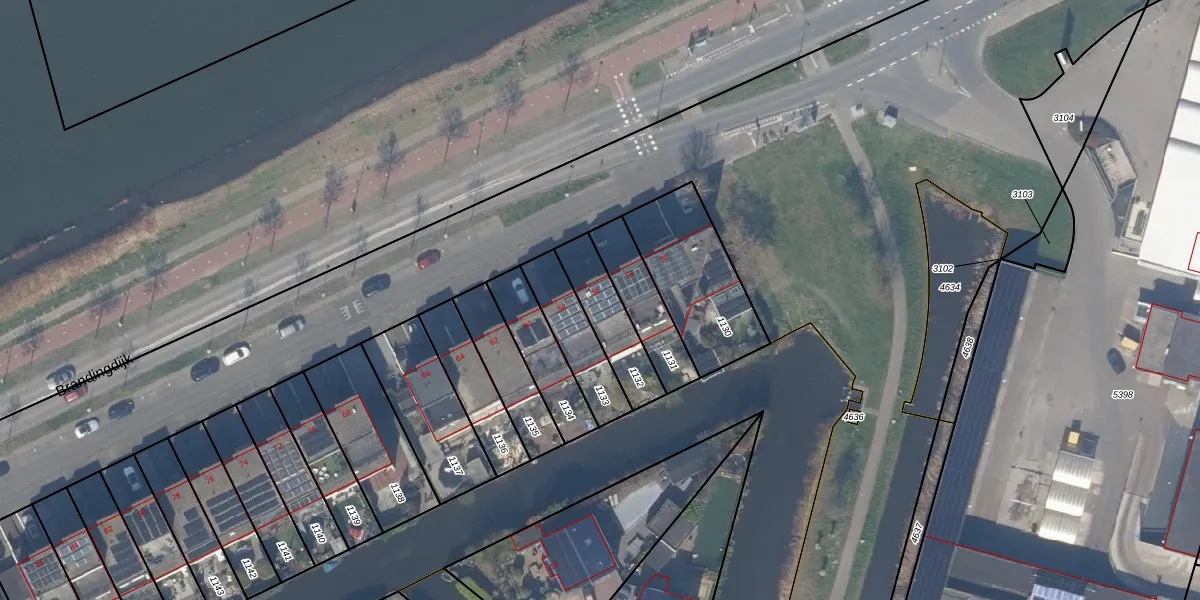 Brandingdijk 56 is gelegen op kadastraal perceel RTD14BC1132. Deze kadastrale aanduiding is uniek en wordt gebruikt door het Kadaster om eigendomsrechten en andere zakelijke rechten vast te leggen. Het perceel maakt onderdeel uit van de kadastrale gemeente Rotterdam.