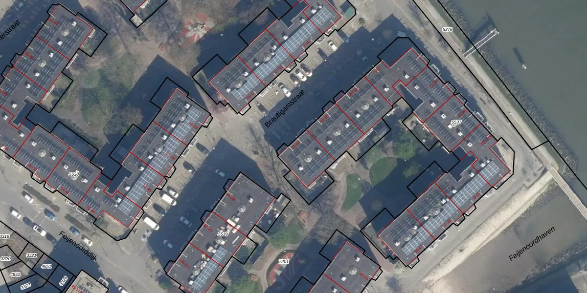 Het perceel waarop het adres ligt is RTD05-Q-5537. De afkorting 'RTD05' staat voor kadastrale gemeente Rotterdam. De oppervlakte van het perceel is 2496 m². Dat is groter dan gemiddeld in Rotterdam, waar de gemiddelde perceeloppervlakte op 1401,79 m² ligt. Het grootste perceel in de kadastrale gemeente is 36,8 ha. Het kleinste perceel heeft een oppervlakte van 0 m². Er zijn 70 adressen aanwezig op het perceel. In de Basisregistratie Kadaster (BRK) werden de grenzen van het perceel geregistreerd op 12-08-2003.