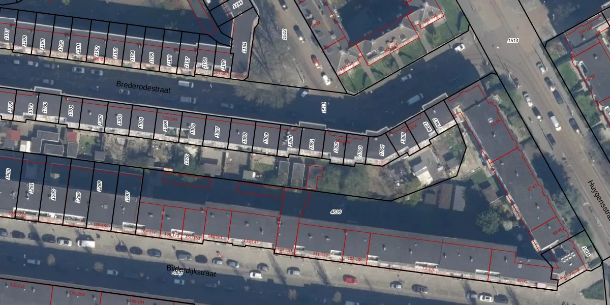 Het perceel waarop Brederodestraat 176 staat heeft een oppervlakte van 69 m². Dit is een klein perceel. De perceeloppervlakte wordt geregistreerd door het Kadaster. Gedetailleerde informatie over de maten van dit perceel kunt u vinden in het rapport Kadastrale kaart met maatvoering van Brederodestraat 176.