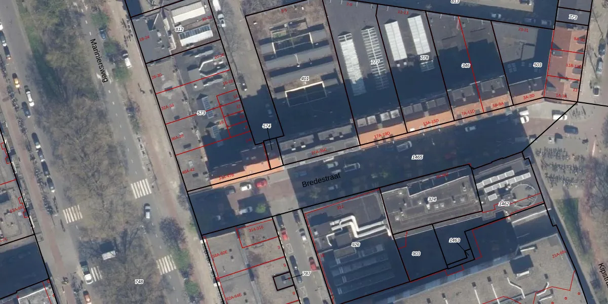 Het perceel waarop Bredestraat 33-B staat heeft een oppervlakte van 1274 m². Dit is een zeer groot perceel. De perceeloppervlakte wordt geregistreerd door het Kadaster. Gedetailleerde informatie over de maten van dit perceel kunt u vinden in het rapport Kadastrale kaart met maatvoering van Bredestraat 33-B.