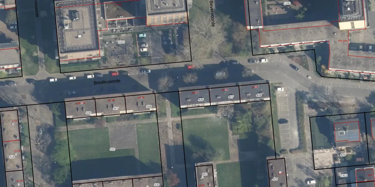Bredevoorde 54 is gelegen op kadastraal perceel CLS00K406. Deze kadastrale aanduiding is uniek en wordt gebruikt door het Kadaster om eigendomsrechten en andere zakelijke rechten vast te leggen. Het perceel maakt onderdeel uit van de kadastrale gemeente Charlois.