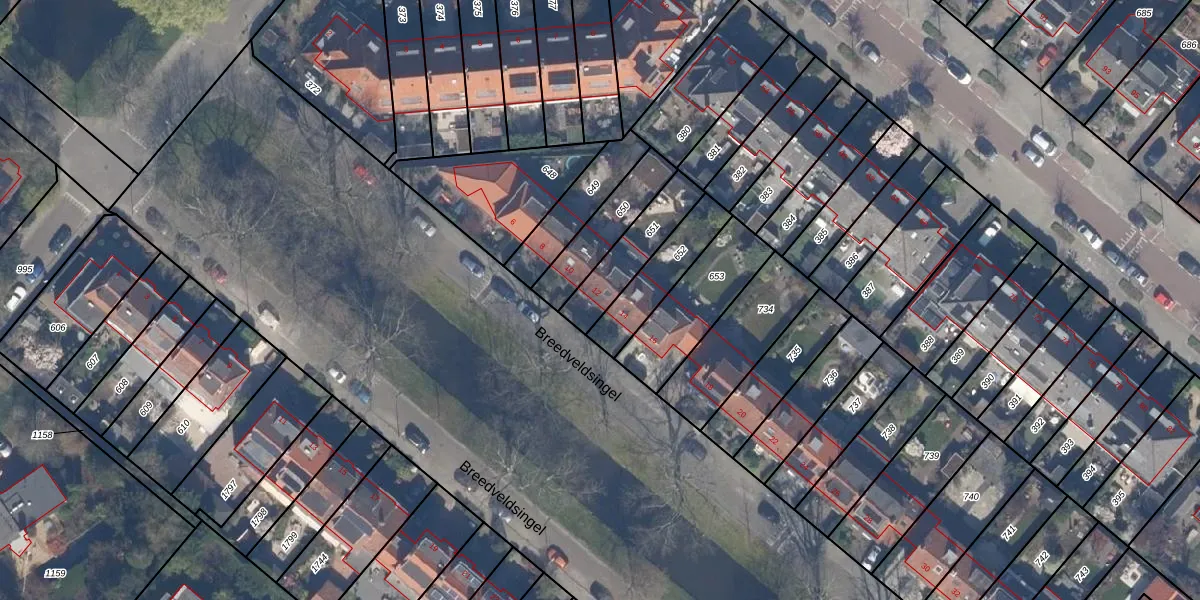 Het perceel waarop Breedveldsingel 12 staat heeft een oppervlakte van 185 m². Dit is een middelgroot perceel. De perceeloppervlakte wordt geregistreerd door het Kadaster. Gedetailleerde informatie over de maten van dit perceel kunt u vinden in het rapport Kadastrale kaart met maatvoering van Breedveldsingel 12.