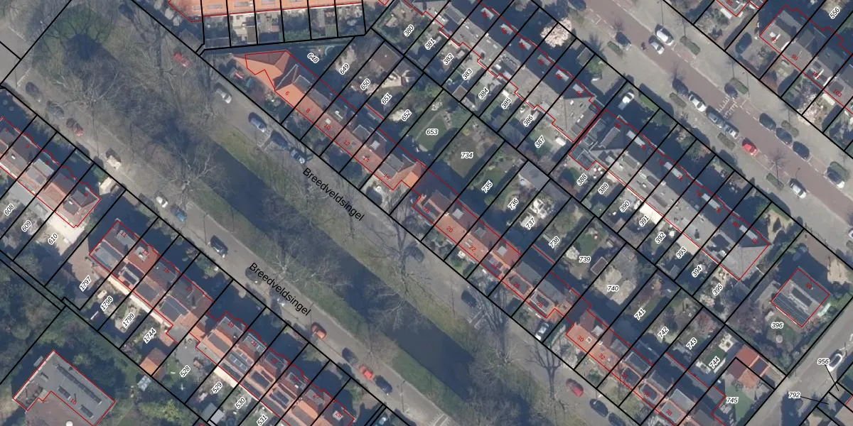 Gebruik de zoekbalk of klik op een perceel voor informatie over de adressen binnen dit perceel.