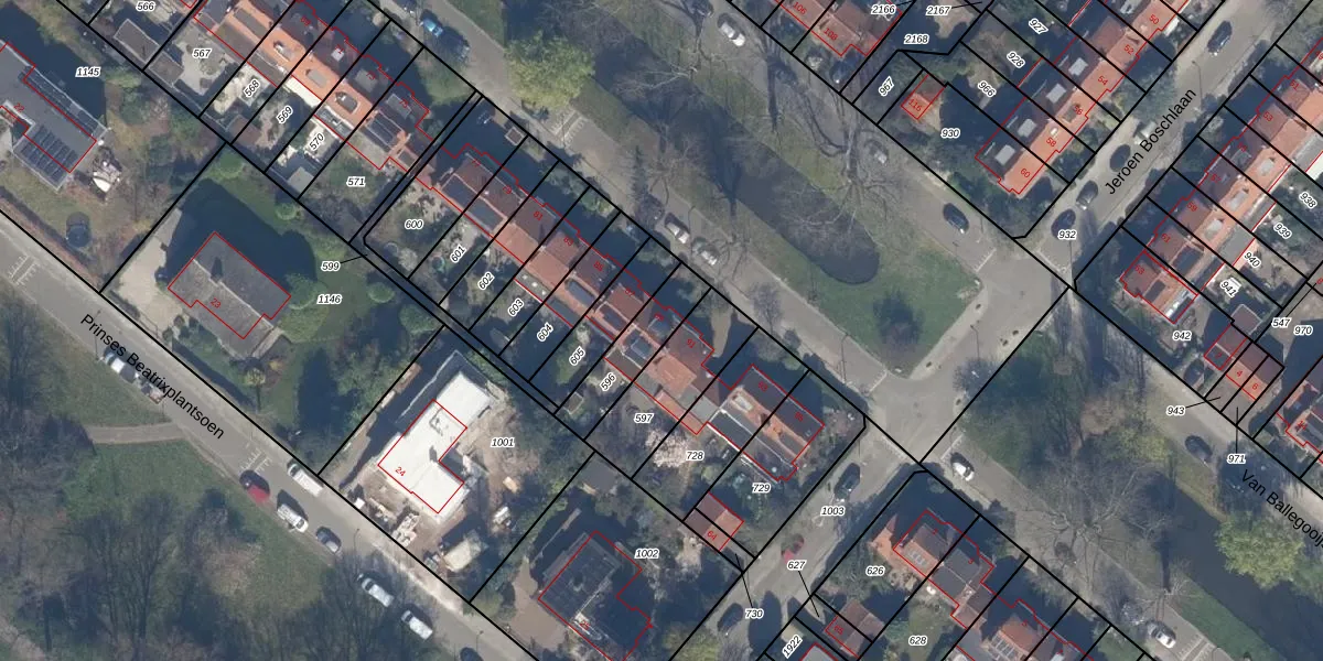 Gebruik de zoekbalk of klik op een perceel voor informatie over de adressen binnen dit perceel.