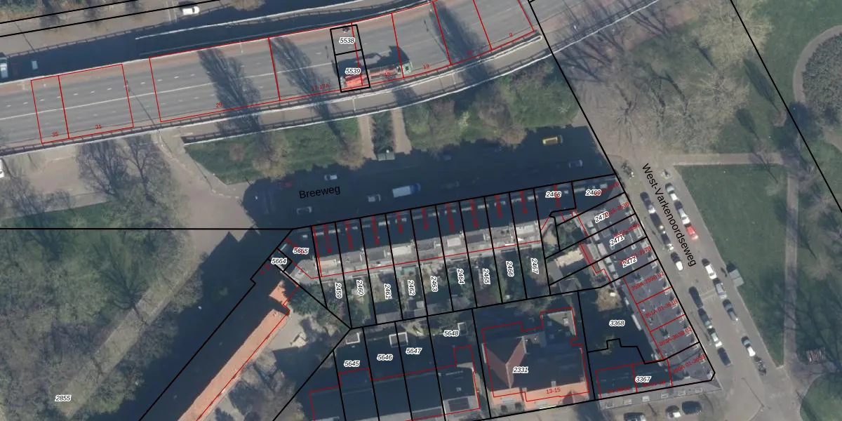 Breeweg 14-A is gelegen op kadastraal perceel RTD05V2463. Deze kadastrale aanduiding is uniek en wordt gebruikt door het Kadaster om eigendomsrechten en andere zakelijke rechten vast te leggen. Het perceel maakt onderdeel uit van de kadastrale gemeente Rotterdam.