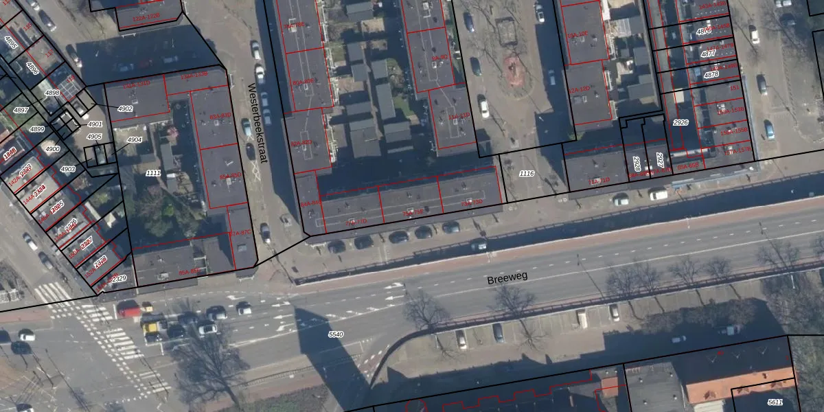 Breeweg 75-D is gelegen op kadastraal perceel RTD05V1115. Deze kadastrale aanduiding is uniek en wordt gebruikt door het Kadaster om eigendomsrechten en andere zakelijke rechten vast te leggen. Het perceel maakt onderdeel uit van de kadastrale gemeente Rotterdam.