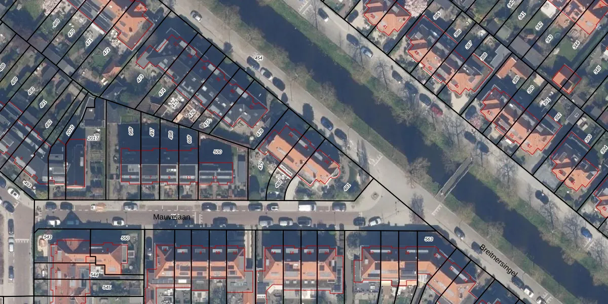 Gebruik de zoekbalk of klik op een perceel voor informatie over de adressen binnen dit perceel.
