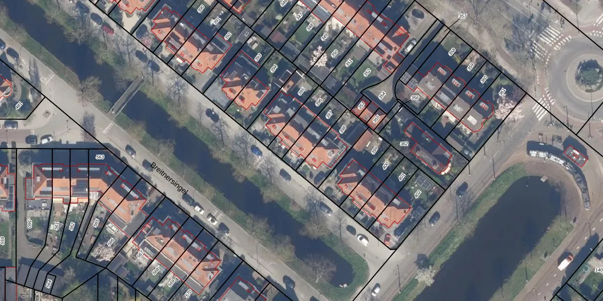 Gebruik de zoekbalk of klik op een perceel voor informatie over de adressen binnen dit perceel.