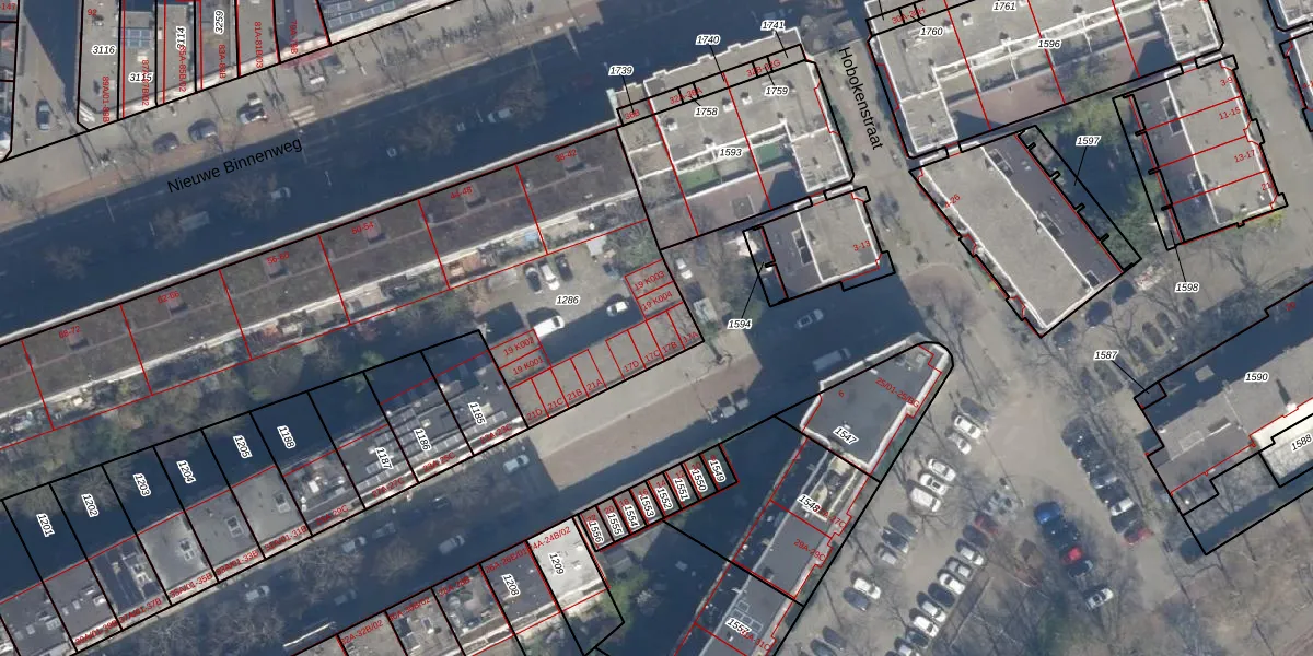 Het perceel waarop het adres ligt is DHV00-E-1286. De afkorting 'DHV00' staat voor kadastrale gemeente Delfshaven. Het perceel is met 5033 m² relatief groot. Het gemiddelde ligt in de kadastrale gemeente Delfshaven op 628,89 m². De grootste perceeloppervlakte in de kadastrale gemeente is 22,2 ha. De kleinste oppervlakte bedraagt 0 m². Op het perceel liggen in totaal 116 adressen. De huidige grenzen van het perceel zijn digitaal in de Basisregistratie Kadaster (BRK) geregistreerd op 17-10-2022.