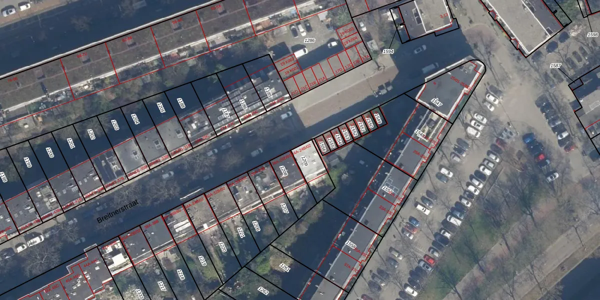 Breitnerstraat 24-B-01 is gelegen op kadastraal perceel DHV00E1209. Deze kadastrale aanduiding is uniek en wordt gebruikt door het Kadaster om eigendomsrechten en andere zakelijke rechten vast te leggen. Het perceel maakt onderdeel uit van de kadastrale gemeente Delfshaven.