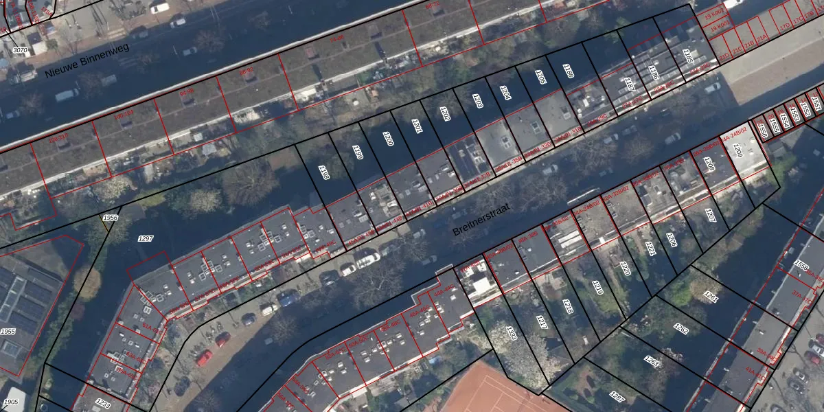 Breitnerstraat 41-A-01 is gelegen op kadastraal perceel DHV00E1200. Deze kadastrale aanduiding is uniek en wordt gebruikt door het Kadaster om eigendomsrechten en andere zakelijke rechten vast te leggen. Het perceel maakt onderdeel uit van de kadastrale gemeente Delfshaven.