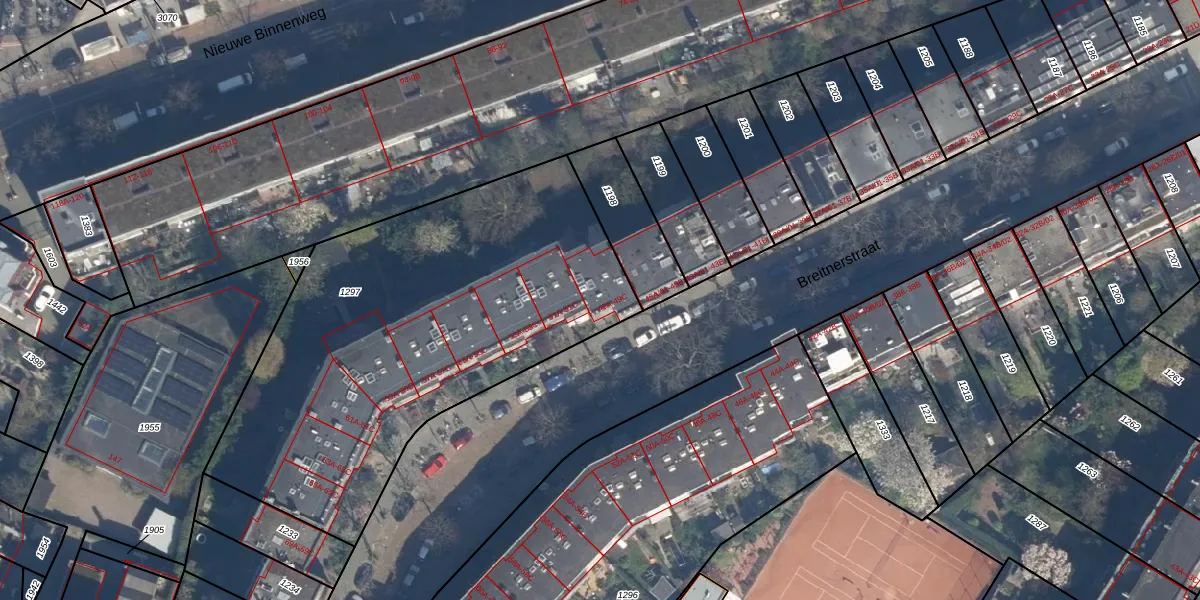 Het perceel waarop Breitnerstraat 49-B staat heeft een oppervlakte van 2284 m². Dit is een zeer groot perceel. De perceeloppervlakte wordt geregistreerd door het Kadaster. Gedetailleerde informatie over de maten van dit perceel kunt u vinden in het rapport Kadastrale kaart met maatvoering van Breitnerstraat 49-B.