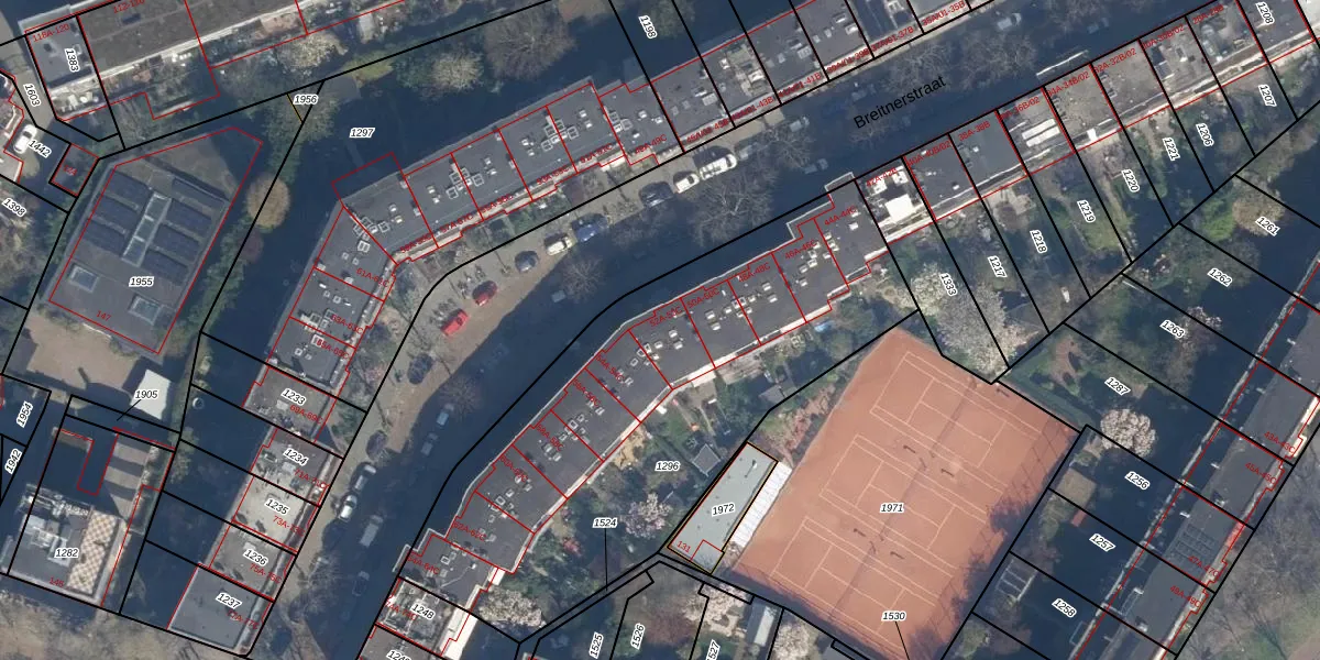 Het perceel waarop Breitnerstraat 52-B staat heeft een oppervlakte van 2286 m². Dit is een zeer groot perceel. De perceeloppervlakte wordt geregistreerd door het Kadaster. Gedetailleerde informatie over de maten van dit perceel kunt u vinden in het rapport Kadastrale kaart met maatvoering van Breitnerstraat 52-B.