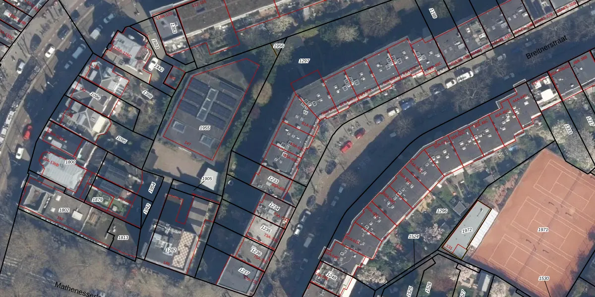 Het perceel waarop Breitnerstraat 63-B staat heeft een oppervlakte van 2284 m². Dit is een zeer groot perceel. De perceeloppervlakte wordt geregistreerd door het Kadaster. Gedetailleerde informatie over de maten van dit perceel kunt u vinden in het rapport Kadastrale kaart met maatvoering van Breitnerstraat 63-B.