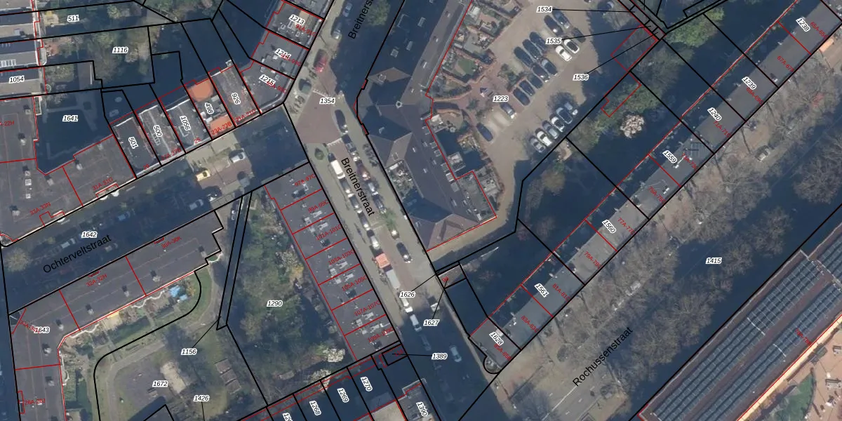 Het perceel waarop Breitnerstraat 96-B staat heeft een oppervlakte van 4169 m². Dit is een zeer groot perceel. De perceeloppervlakte wordt geregistreerd door het Kadaster. Gedetailleerde informatie over de maten van dit perceel kunt u vinden in het rapport Kadastrale kaart met maatvoering van Breitnerstraat 96-B.