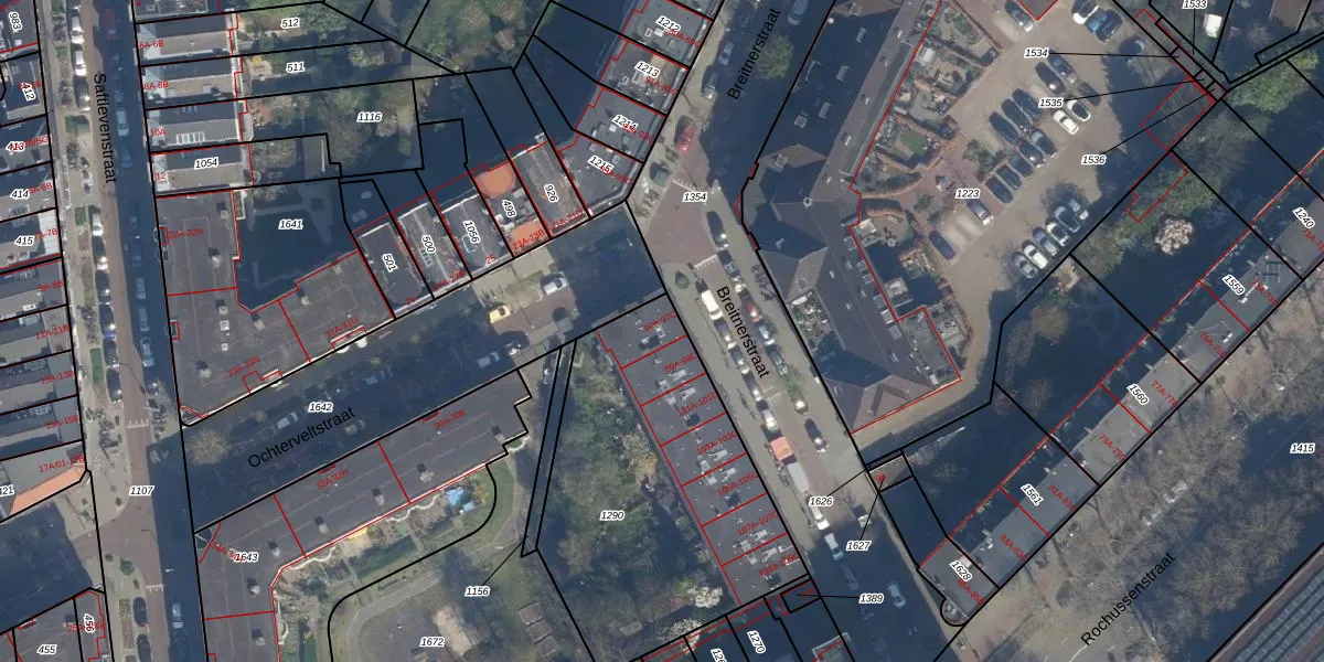 Het perceel waarop Breitnerstraat 97-B staat heeft een oppervlakte van 1409 m². Dit is een zeer groot perceel. De perceeloppervlakte wordt geregistreerd door het Kadaster. Gedetailleerde informatie over de maten van dit perceel kunt u vinden in het rapport Kadastrale kaart met maatvoering van Breitnerstraat 97-B.