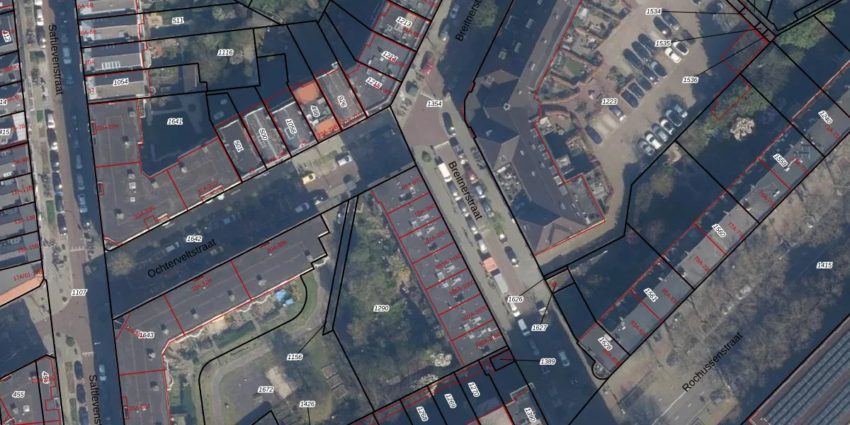 Het perceel waarop Breitnerstraat 99-B staat heeft een oppervlakte van 1409 m². Dit is een zeer groot perceel. De perceeloppervlakte wordt geregistreerd door het Kadaster. Gedetailleerde informatie over de maten van dit perceel kunt u vinden in het rapport Kadastrale kaart met maatvoering van Breitnerstraat 99-B.