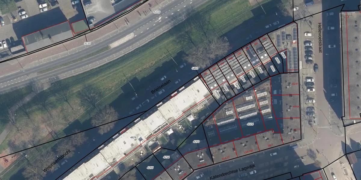 Het perceel waarop Brielselaan 214 staat heeft een oppervlakte van 2250 m². Dit is een zeer groot perceel. De perceeloppervlakte wordt geregistreerd door het Kadaster. Gedetailleerde informatie over de maten van dit perceel kunt u vinden in het rapport Kadastrale kaart met maatvoering van Brielselaan 214.