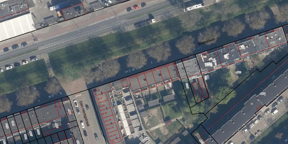 Het perceel waarop Brielselaan 292 staat heeft een oppervlakte van 4890 m². Dit is een zeer groot perceel. De perceeloppervlakte wordt geregistreerd door het Kadaster. Gedetailleerde informatie over de maten van dit perceel kunt u vinden in het rapport Kadastrale kaart met maatvoering van Brielselaan 292.